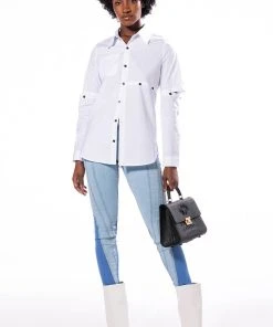 The AKIRA Label Added Flare Front Pleat Maxi Skirt is made from a denim base fabrication and features a high waist, a classic 5-pocket design, a unique, flared front pleat detail, and a maxi length. Complete with a raw cut bottom hem and a pull-on fit. Style with a bodysuit, bolero, and chunky platform boots for a finished look.