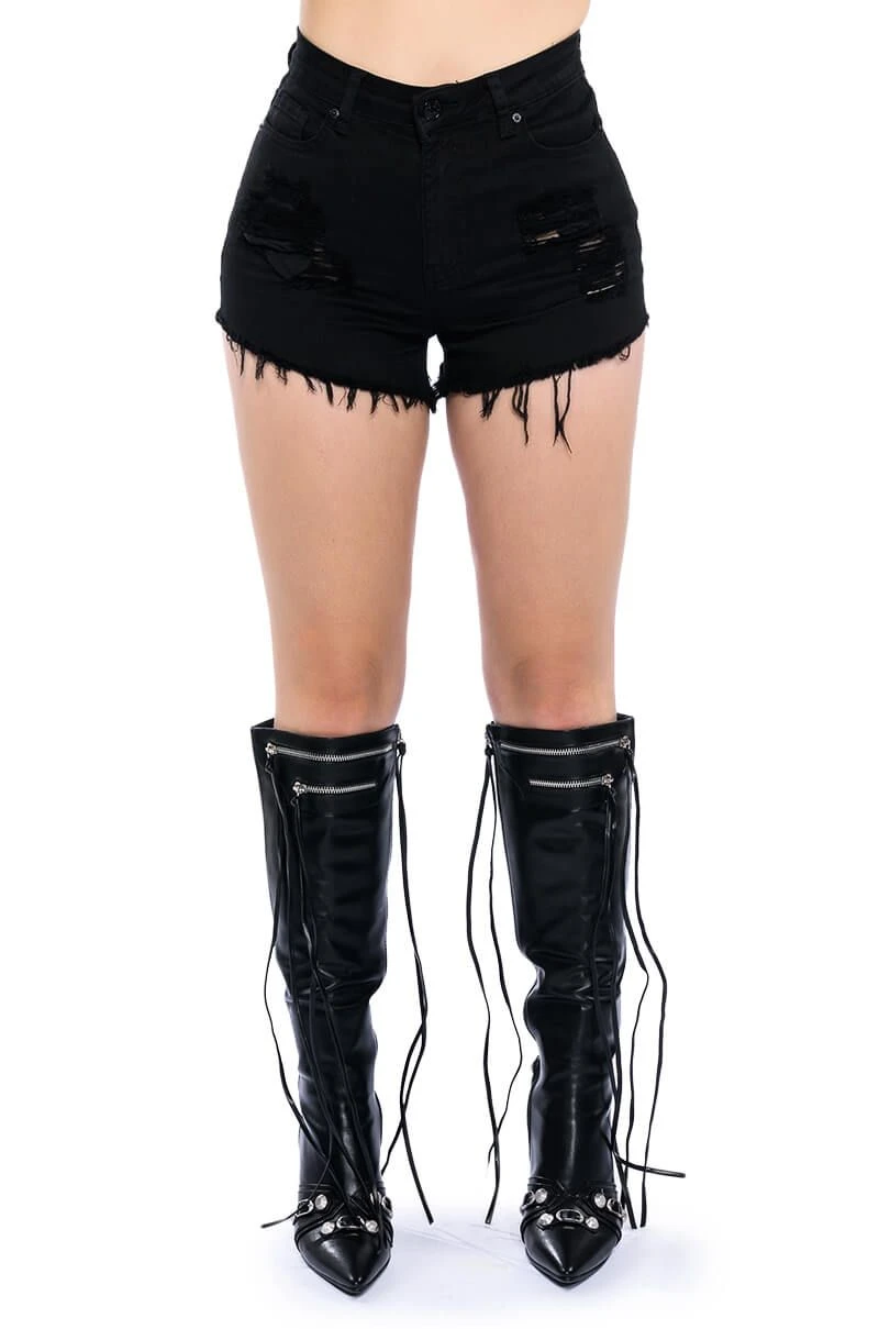 Live the good life in The AKIRA Label Bella Vita Distressed Denim Short! These super stretchy shorts are made from a distressed denim fabrication and feature a high rise waistline, belt loops, a classic five-pocket design, a frayed hemline, and a button and zipper closure.