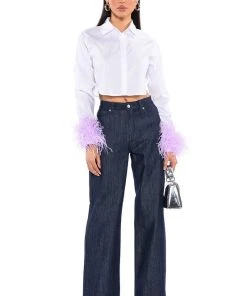 The AKIRA Label Big Energy Feather Jean Short is a fresh denim piece featuring real feather fringe, a high rise waist, a five pocket design, working belt loops, a cheeky high cut silhouette, and a classic button and zipper closure.