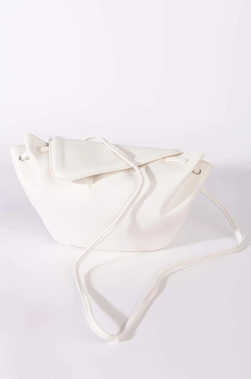 Bird is the word with The AKIRA Label Birdy Beak Flap White Purse. This chic faux leather handbag features a triangular fold over front flap, a mini bucket bag silhouette, and a magnetic inner clasp closure. Complete with a coordinating faux leather shoulder strap.