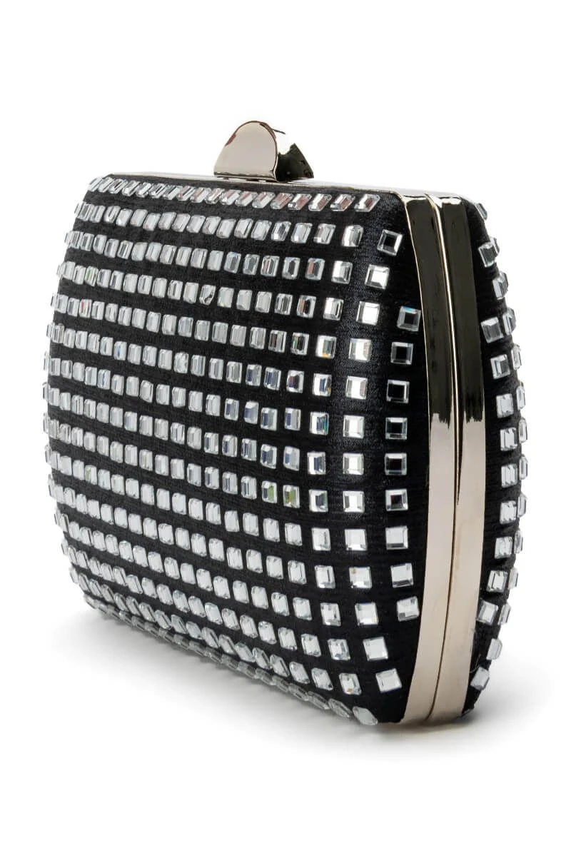 Keep them staring in the AKIRA Label Check Me Out Square Mirror Clutch! This blinged-out clutch features a rounded rectangular shape, a metal frame with cushioned textile outer lining, square mirror detailing, a top metal push lock clasp, a satiny inner pocket, and a detachable chain link shoulder strap.