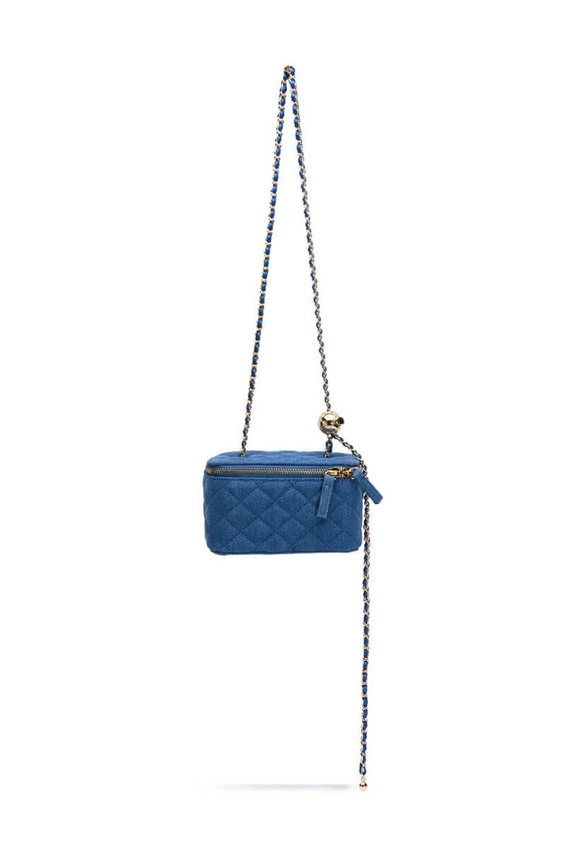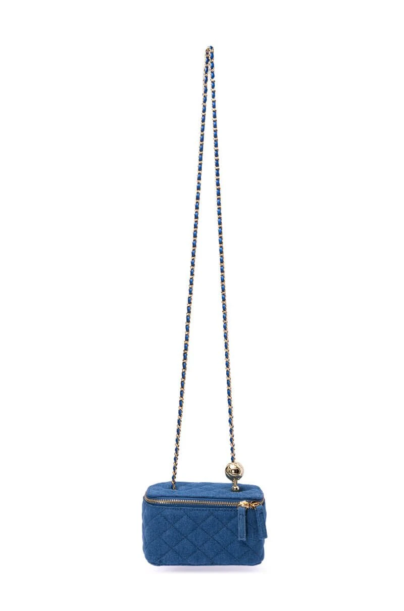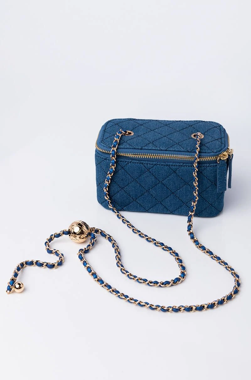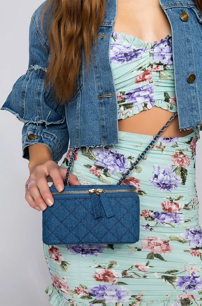 Nothing screams fashion like the AKIRA Label Denim Quilted Cross Body Bag! This body bag is made from a quilted light blue denim fabrication, and is complete with a zip top, with a braided chain strap. We have the best intentions with the AKIRA Label Heart Of Gold Rhinestone Purse! Wear this with a full denim ensemble for an iconic look!