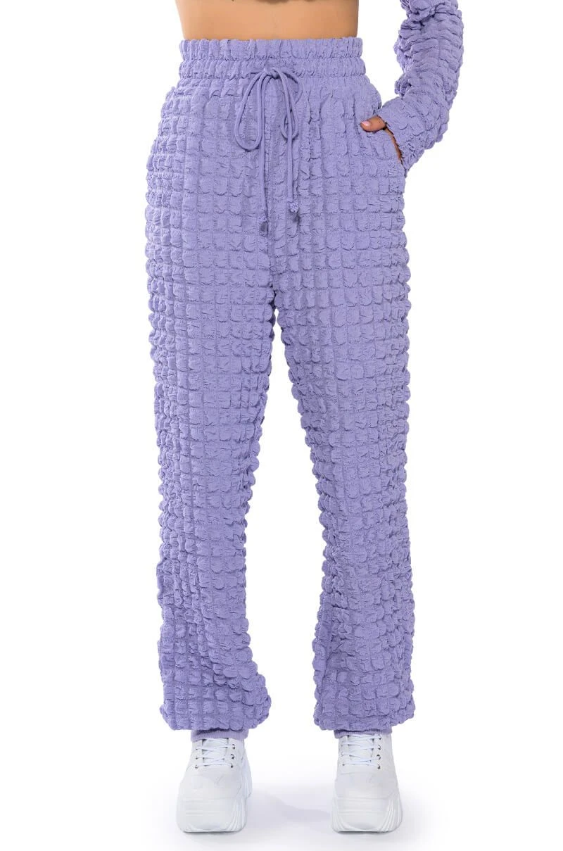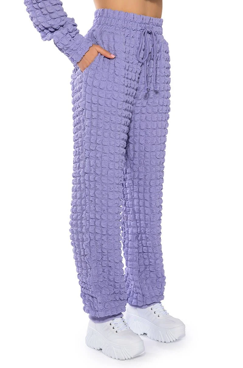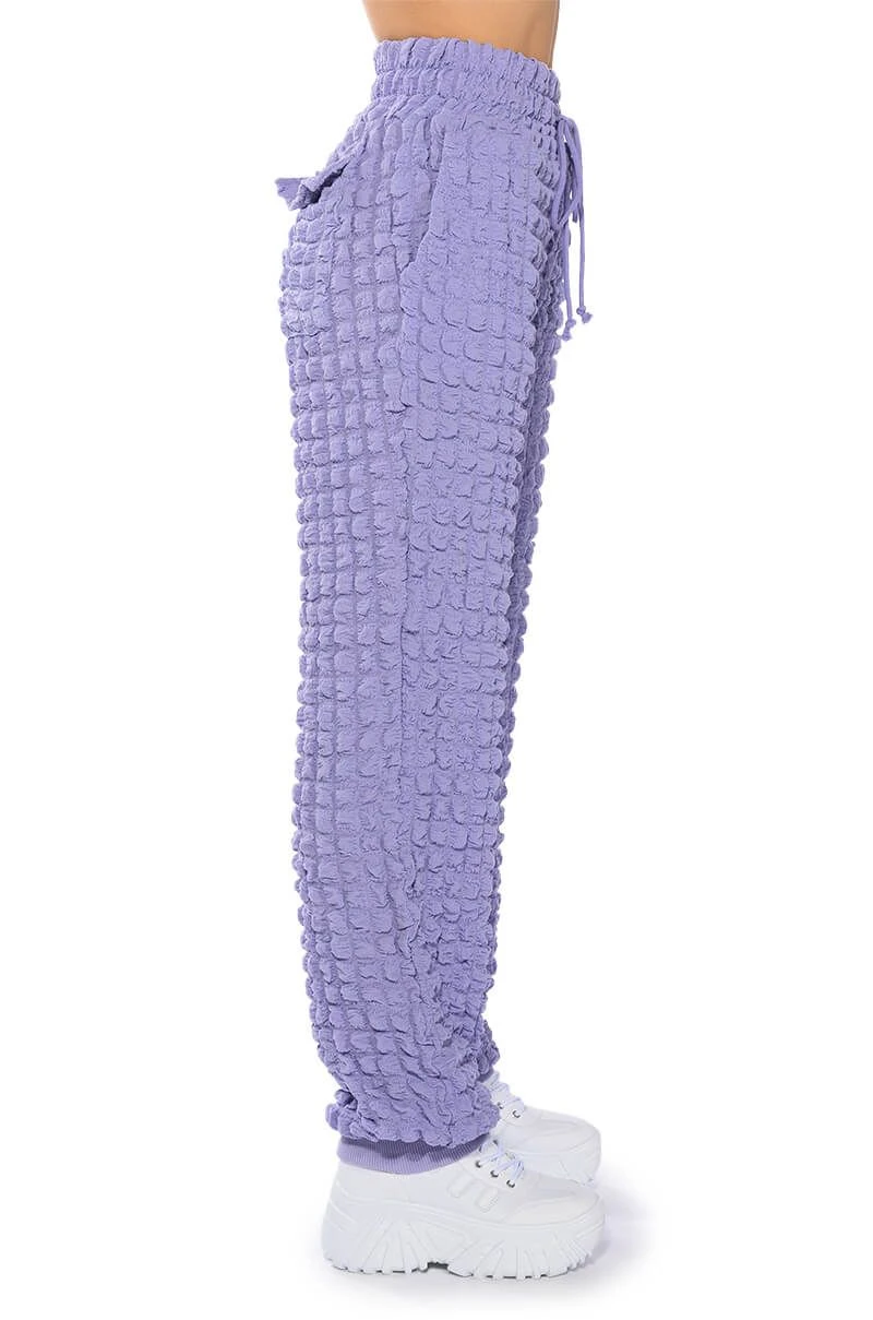 Live out loud with The AKIRA Label Existing Loudly Textured Jogger! This piece features a stretchy, unlined popcorn textured fabrication, a wide elastic drawstring waistband, and slant side pockets. Complete with ribbed elastic bottom hems, buttoned back pockets, a pull on design, and tons of stretch. Style this jogger with fur boots and the coordinating AKIRA Label Existing Loudly Textured Button Down Top for a cozy, effortless look!