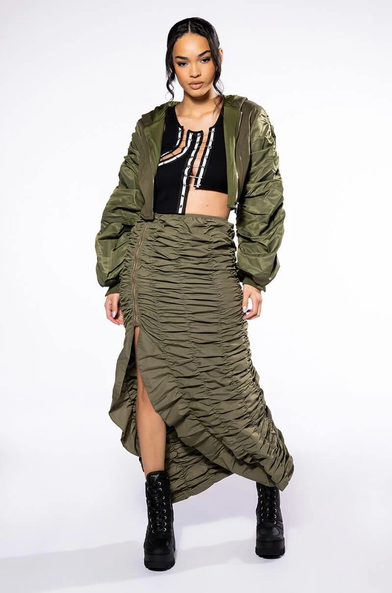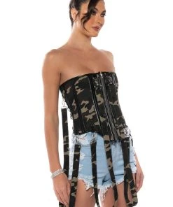 The AKIRA Label Expensive Taste Pin Detail Top is a stretchy ribbed knit tank featuring a sleeveless silhouette and an asymmetrical cropped cut. Complete with cut out front detailing, r-ring accents, safety pin closures, and striped ribbon trim.