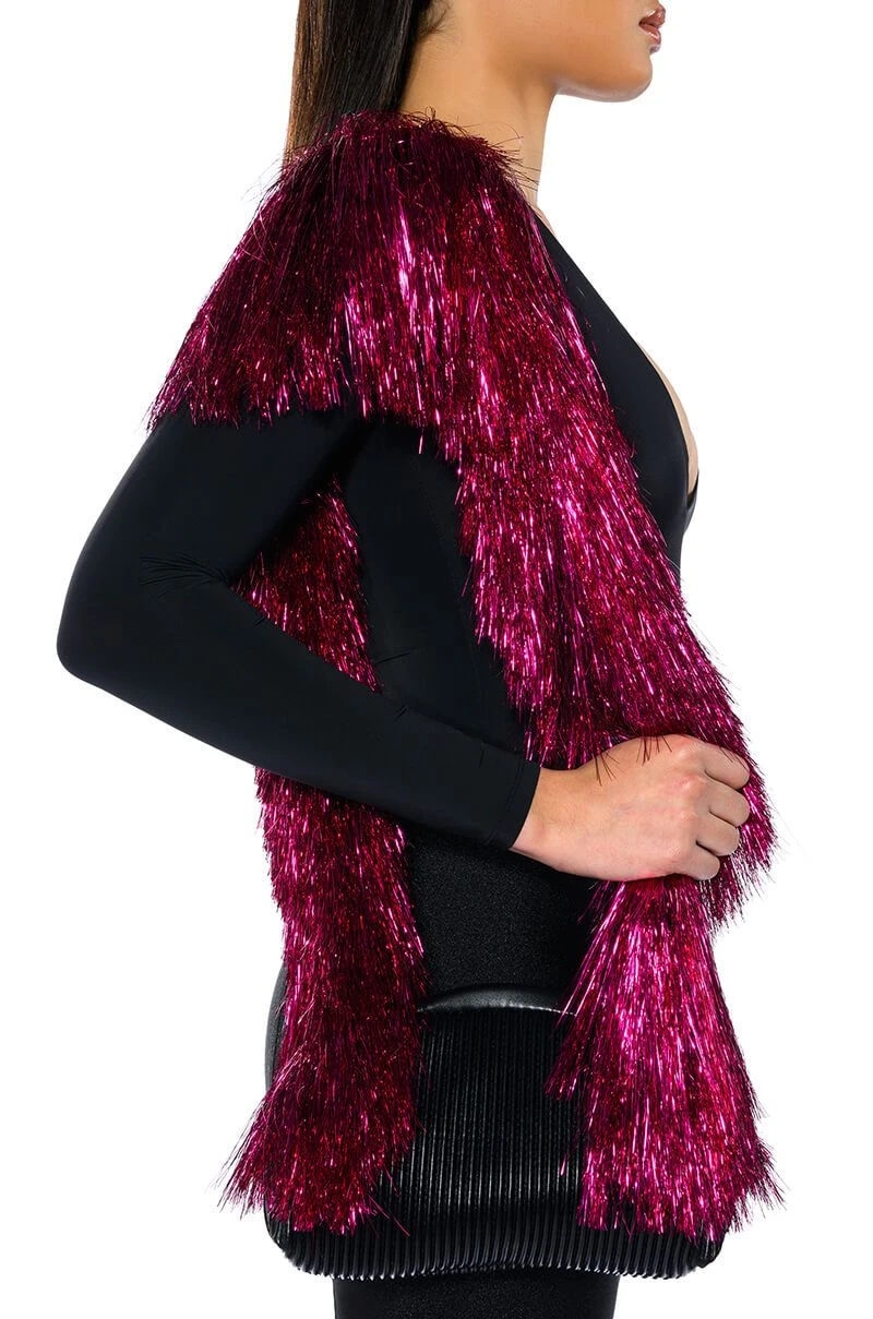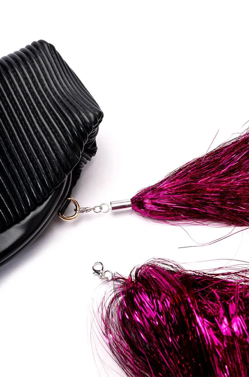 Add that extra glam to your fit with The AKIRA Label Fancy Girl Tinsel Purse Strap! This one-of-a-kind piece is easy to use, simply clip the strap to your bag or purse, and voilà! Fit complete. The strap is made from a flexible base and features iridescent tinsel detailing with metallic lobster claw closures.