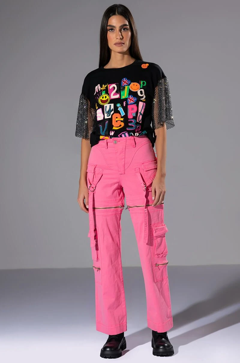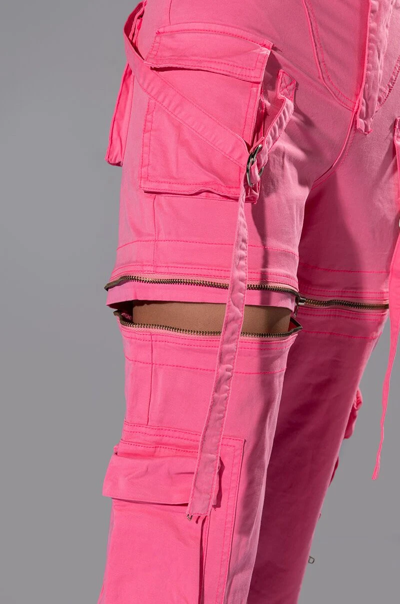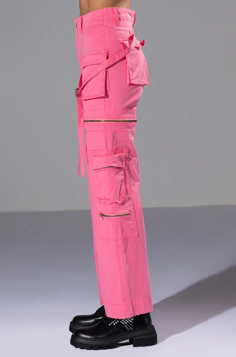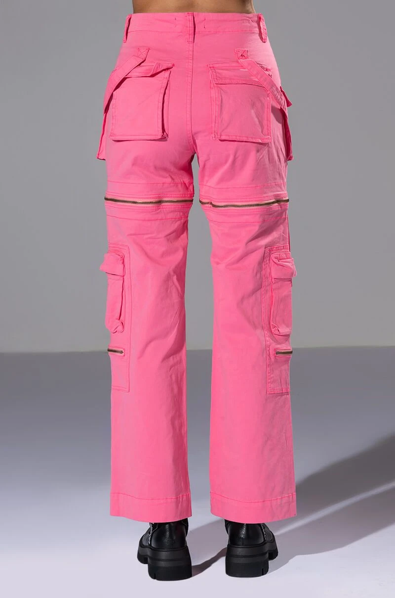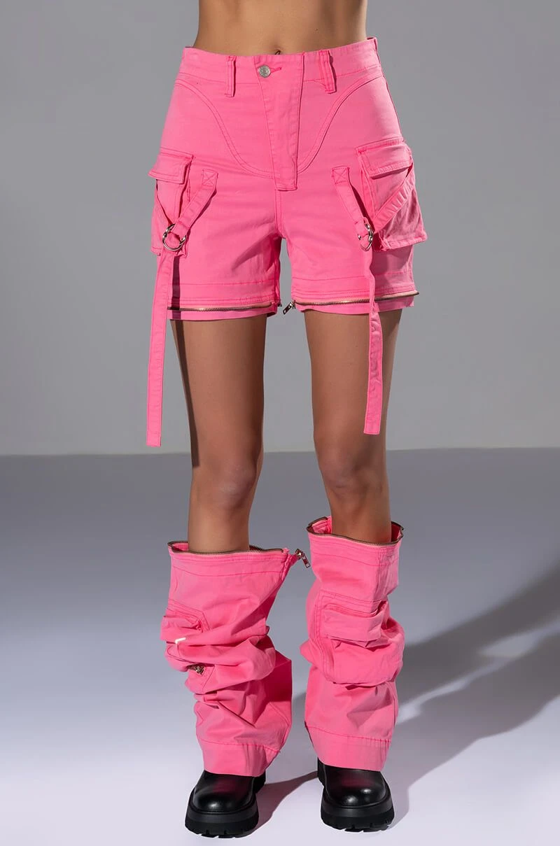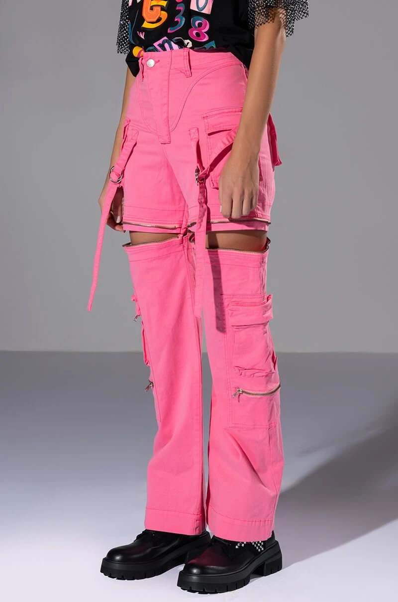 We’re obsessed with this 2-in-1 piece! The AKIRA Label Feels Wide Leg Cargo Pant features a multifunctional design, zip-off the bottom half to transform these wide-leg bottoms into cargo shorts! Complete with a high waist rise, zippered pockets, a structured cotton blend fabrication, mini cargo front pockets, functional back pockets, wrap-around strappy belted detailing, and a zip front button closure. Style as pants with platform boots and a bodysuit, or zip-off the bottoms, throw on a cropped tee, long socks and mules for an effortless look!