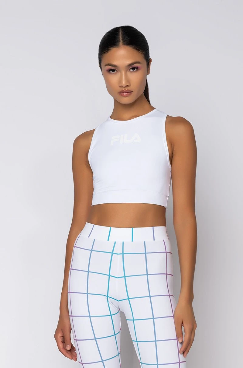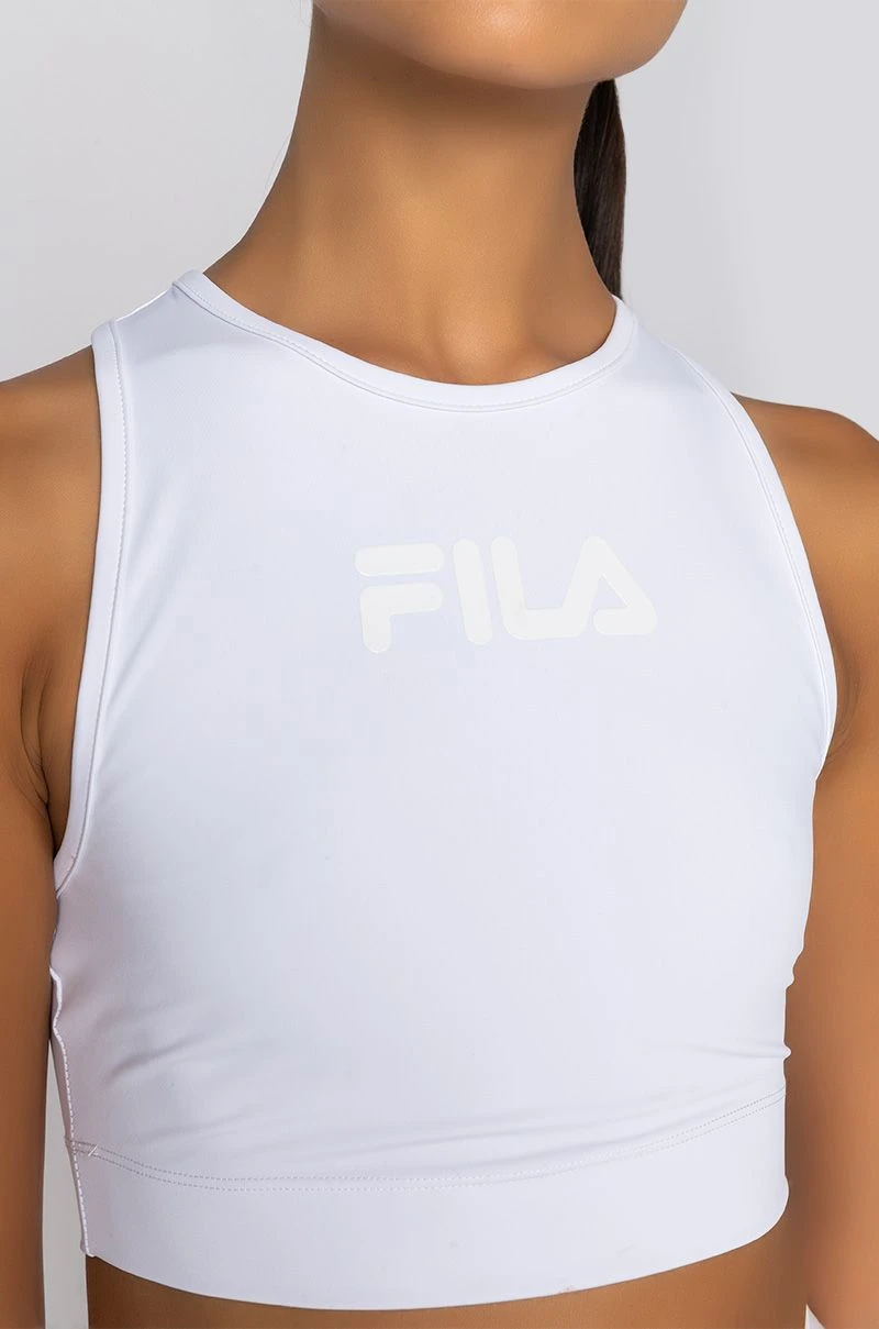 The FILA Alva Tank is an ultra cropped racer back tank featuring a scoop neckline, tonal FILA logo, and an elasticized hem.