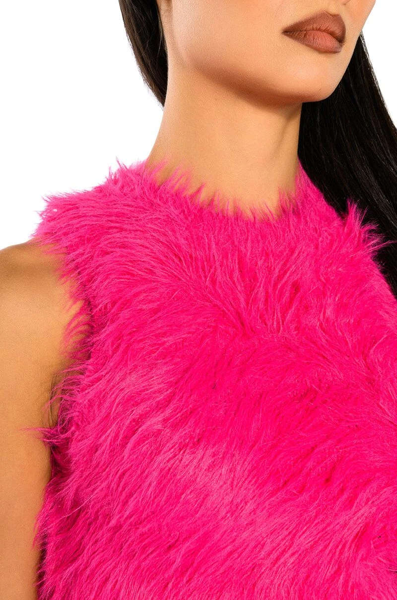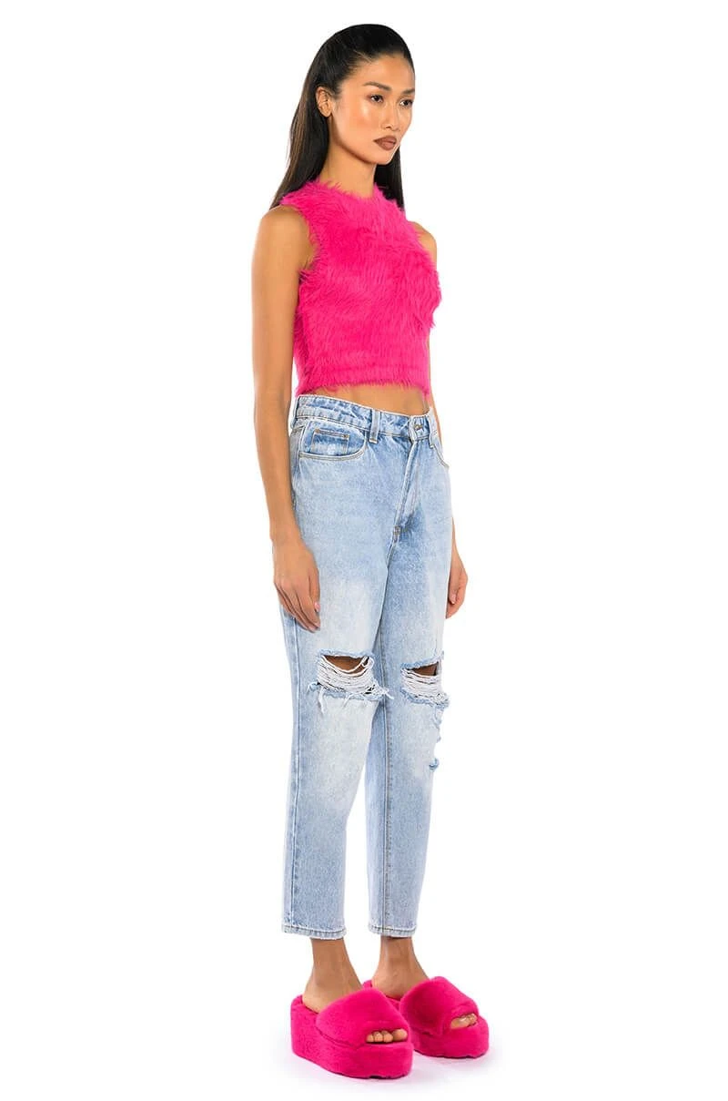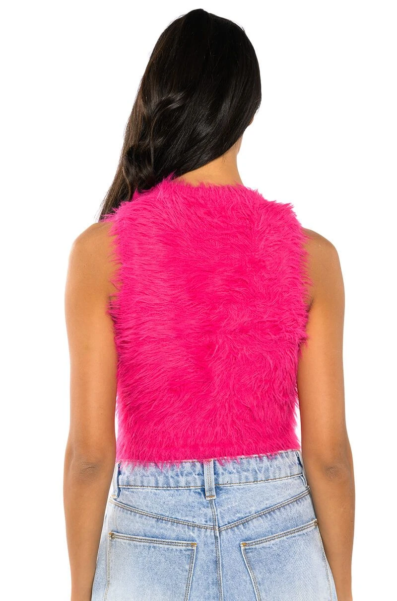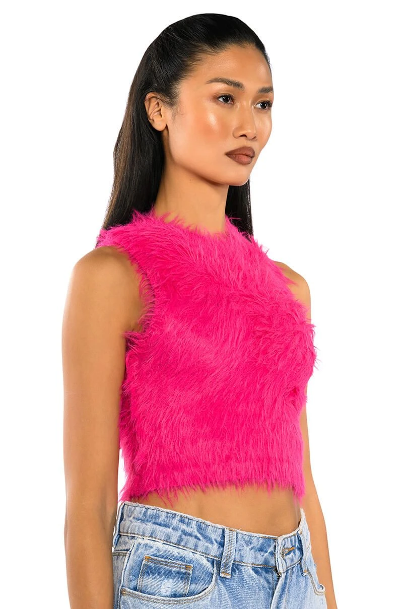 Wanna feel like you never left your bed? The AKIRA Label Fuzzy Mood Sleeveless Top is perfect for staying cozy throughout the day, while still ensuring you’re slaying the game! This furry number features a stretchy, knit base fabrication, a crew neckline, sleeveless silhouette, and an allover fuzzy design. Complete with a form-fitting cropped silhouette and pull-on fit. Did we mention that the styling possibilities are endless? Style with bell bottom denim and heeled booties, or try relaxed cargos and platform boots.