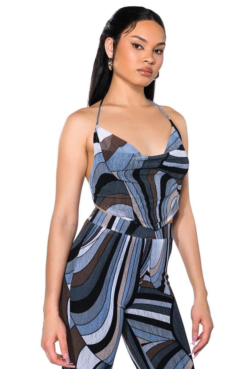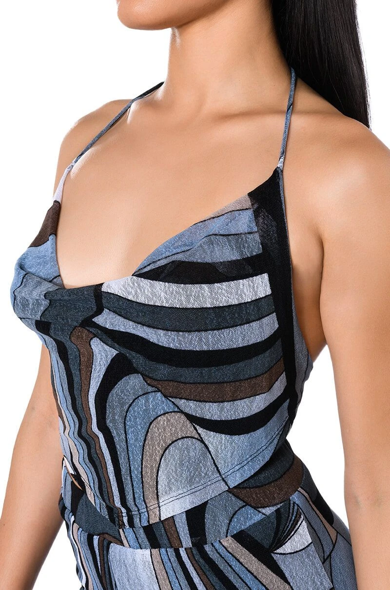 The AKIRA Label It Girl Corset Tie Top is made from a lightweight, lace textured base fabrication and features cascading cowl neckline, a halter tie-back neck, and a cropped silhouette. Complete with a pointed bottom hem, a gorgeous open back, and a tie-back closure. Style with the matching bottoms, The AKIRA Label It Girl Wide Leg Palazzo Pants, The AKIRA Label It Girl Duster, and platform heels for a finished look!