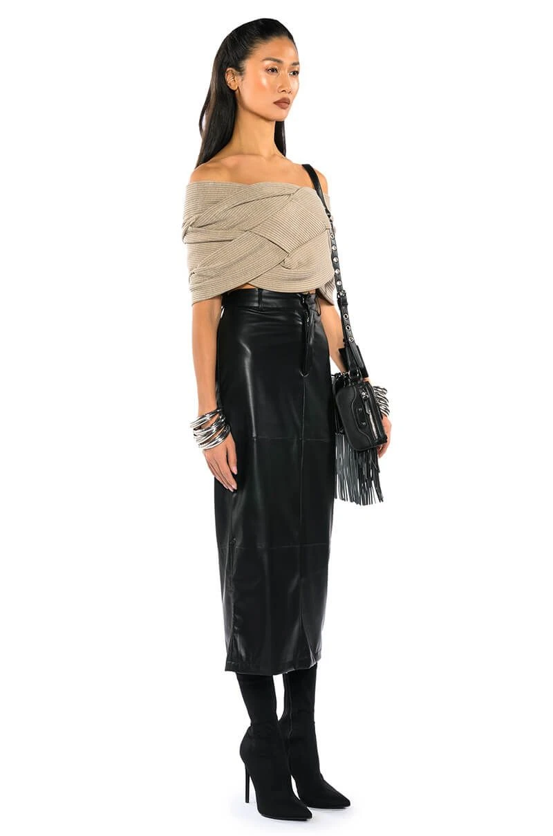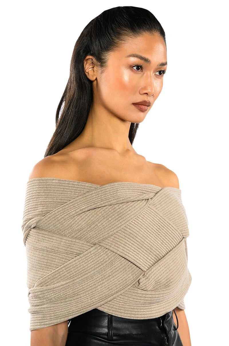 The AKIRA Label Knot Your Average Gal Strapless Knit Top is made from a soft ribbed knit fabrication and features a strapless neckline, a wide braided design, an inner bralette with elastic hems, off-shoulder, elbow-length sleeves, a cropped silhouette, and a slip-on fit. Pair this piece with wide leg bottoms and booties to complete your chic, textured look.