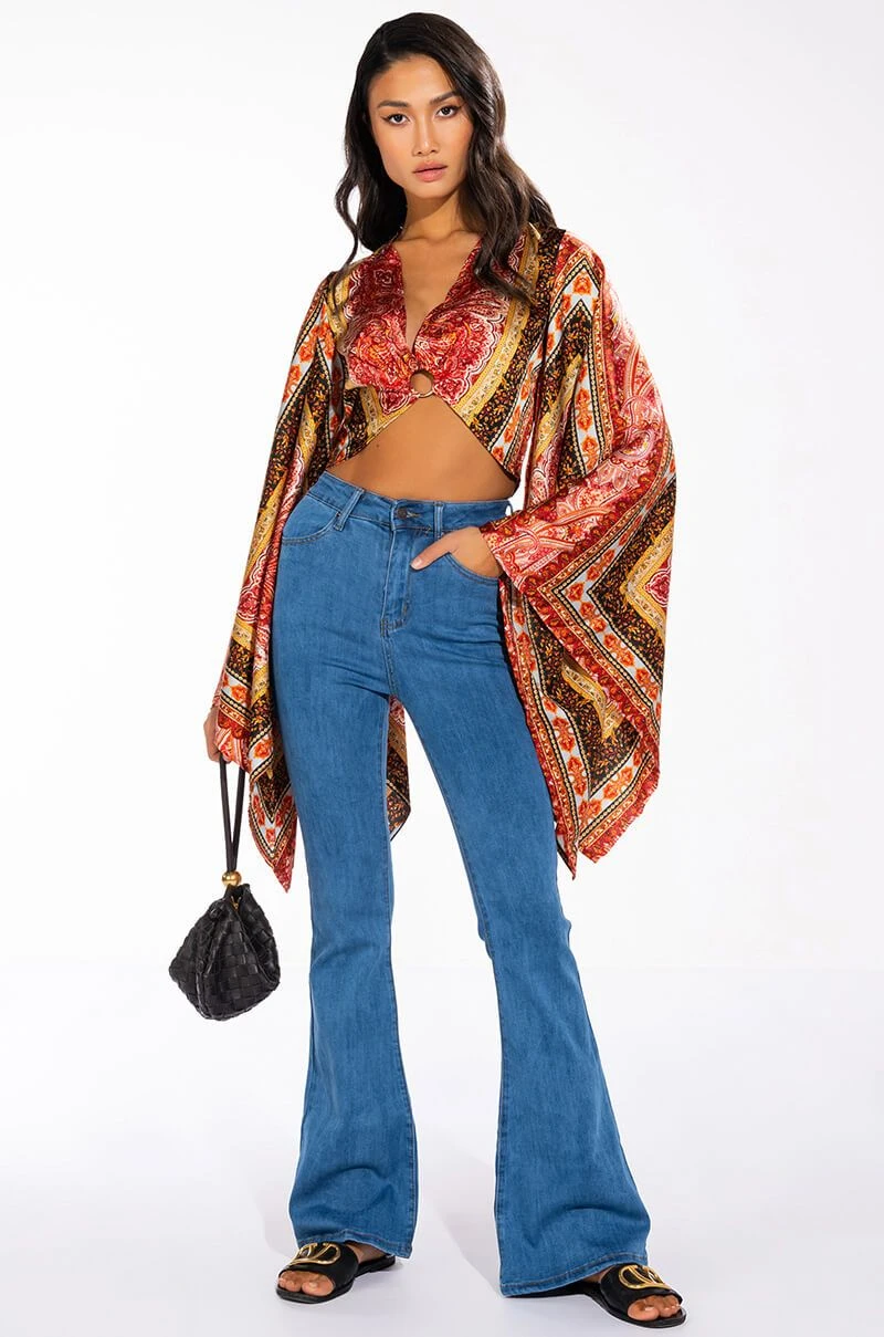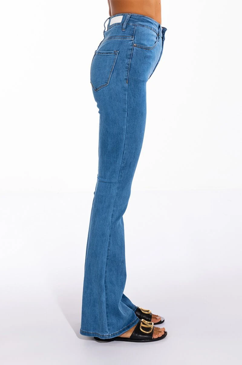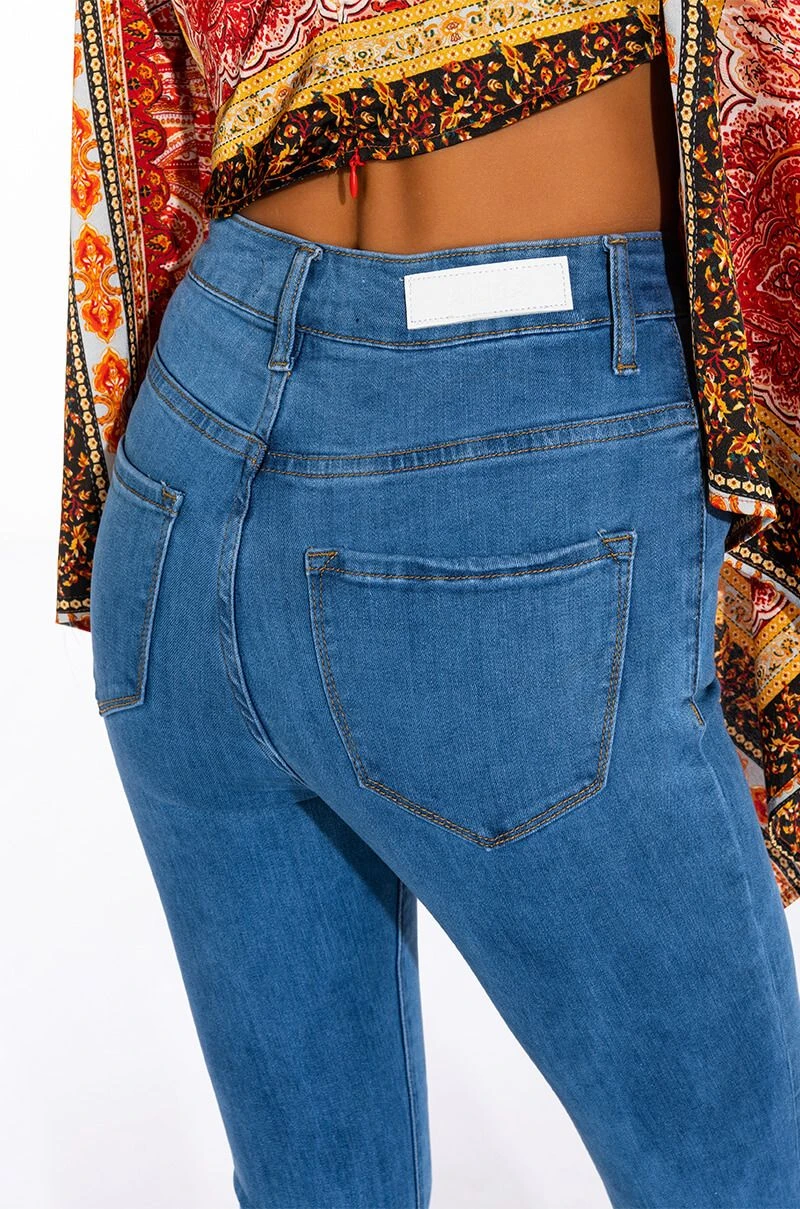 Let’s get groovy in the AKIRA Label Lena Super High Rise Flare Denim Pants. Crafted from a stretch denim base, these dark wash jeans provide a retro look with an ultra high rise waist, flare leg silhouette, and functional pocket design. Take a trip back in time with this pair.