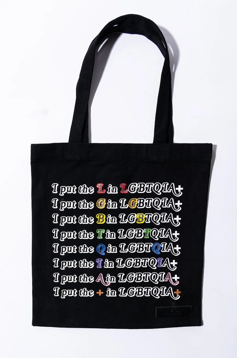 Celebrate the way you love with The AKIRA Label LGBTQIA Oversized Canvas Tote. This top handle tote features a woven body, printed rainbow text detailing, and subtle rhinestone accent. Perfect for pride, shopping, or on-the-go!