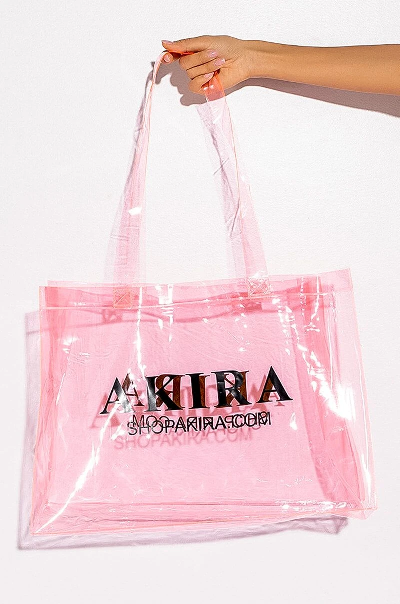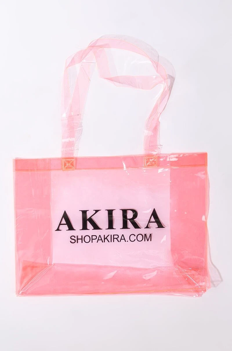 Don’t miss out on the AKIRA Label Limited Edition AKIRA PVC Shopping Bag! This chic shopping spree-ready top handle tote features a translucent PVC body, printed AKIRA logo detail, and a fresh pink colorway. Perfect for shopping or on-the-go!