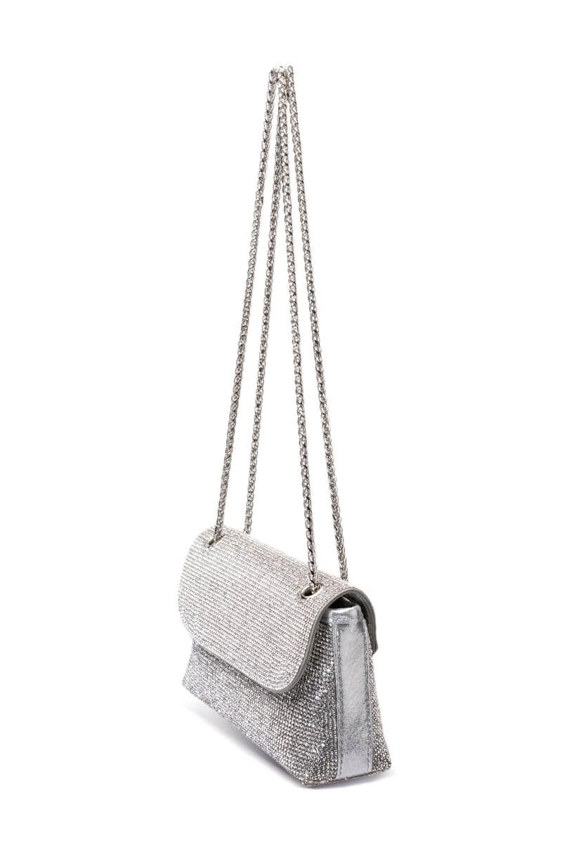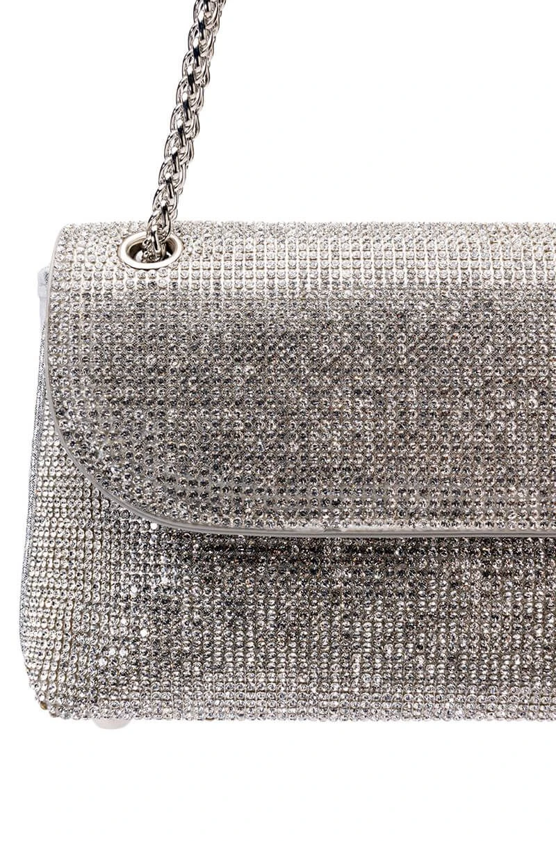 The AKIRA Label Marry The Night Embellished Shoulder Bag is made from a glittery fabrication base and features a boxy design, rhinestone body detailing, a front flap, and four metal ball purse feet. Complete with a braided chain shoulder strap and magnetic snap button front closures.