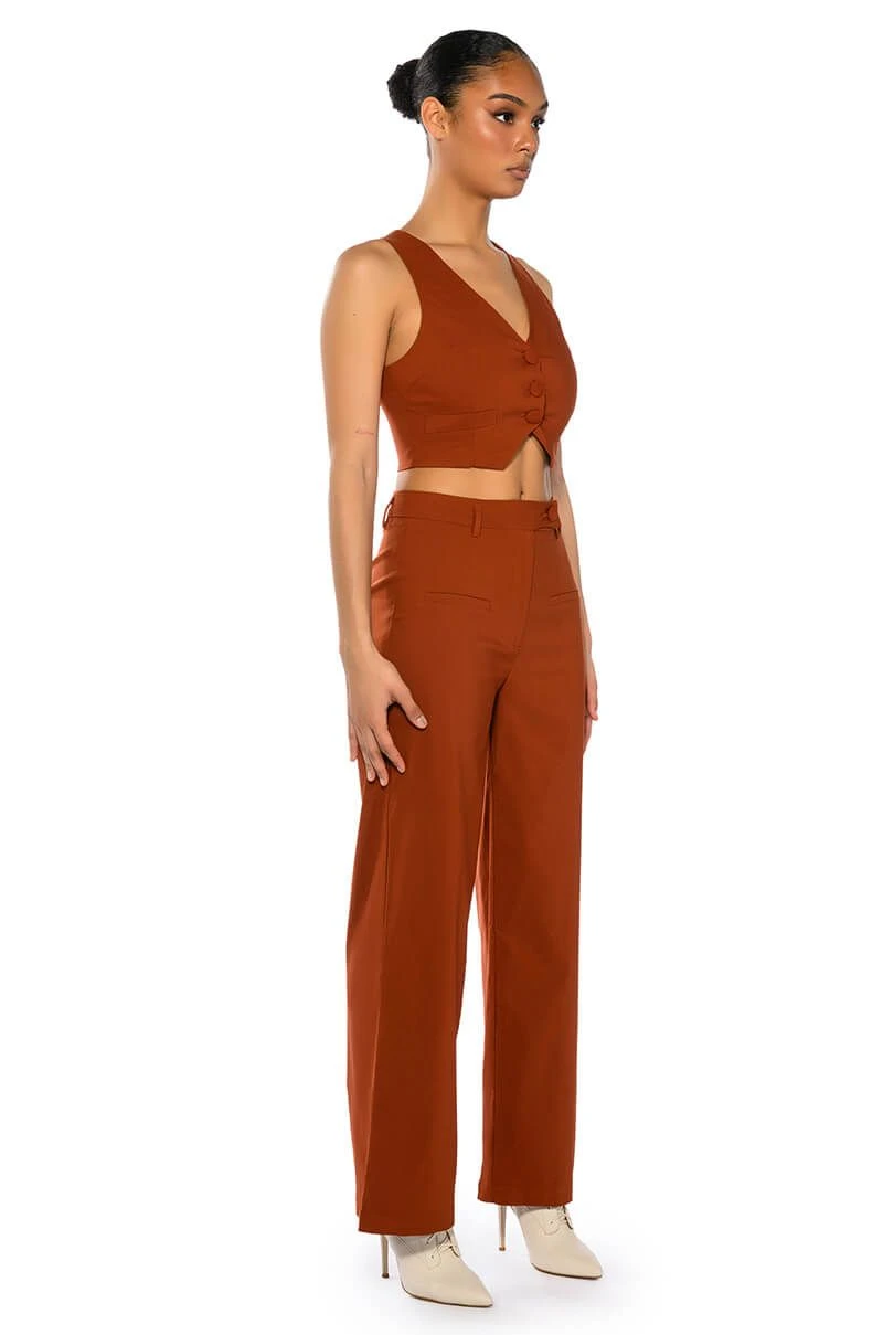 The AKIRA Label Most Likely To Dream Big High Waisted Pants is made with a smooth, lightweight base material and sleek design. Complete with a high-rise waist, a zip-up front closure with asymmetrical button detail, faux front pockets, and flattering princess seaming. These pants also feature working belt loops and a wide leg silhouette! Pair with the coordinating AKIRA Label Most Likely To Dream Big Vest Top and platform heels for a sexy, boss babe look.