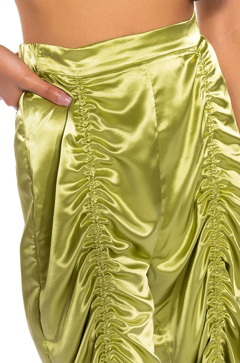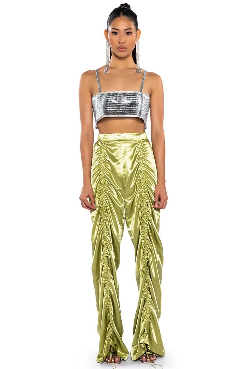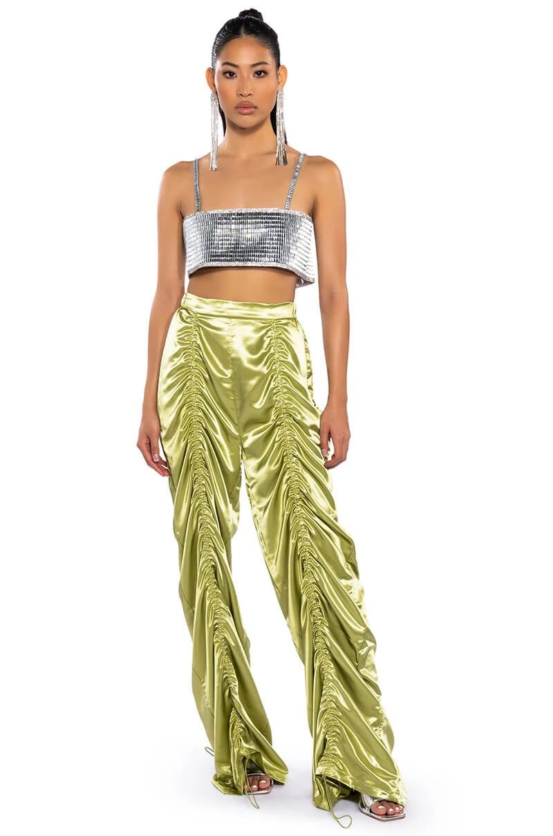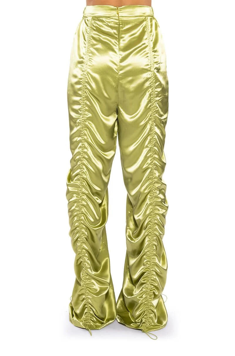 Cause who wants to fit in anyways? The AKIRA Label Never Regular Convertible Cinched Satin High Rise Pants are perfect for standing out in the crowd. Made from a luxe, satin base fabrication, these bottoms feature a high waist, a concealed back zipper closure, and adjustable drawstrings for a ruched front and back leg. Without the ruched look, you have an elegant wide leg silhouette. Pull the self-tie drawstring and voilà – a sexy, cinched look! Pair these convertible bottoms with platform heels and a nude bodysuit, for a chic girl look!