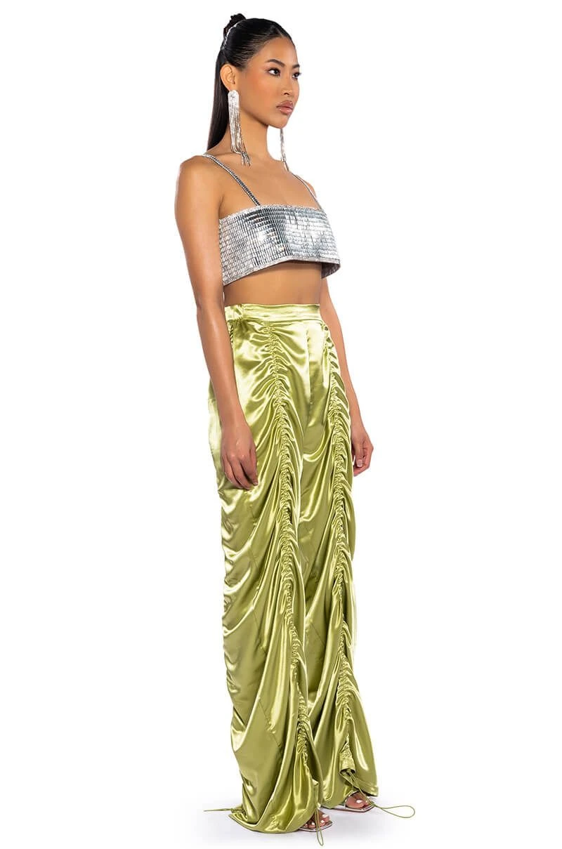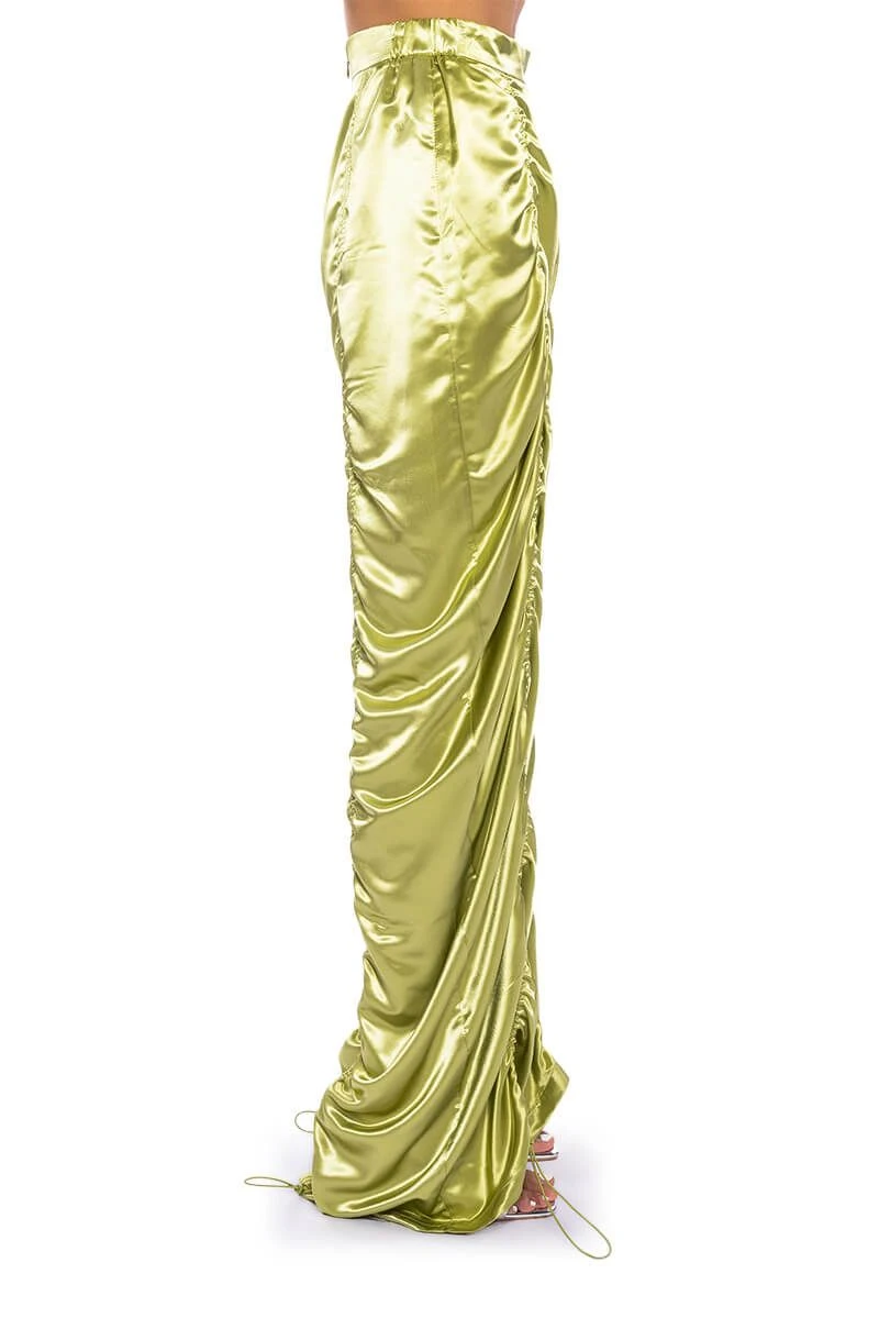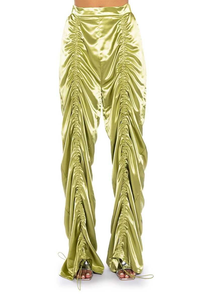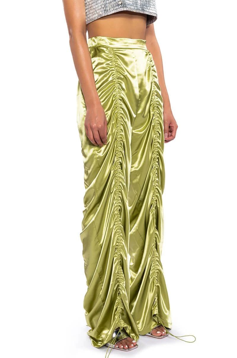 Cause who wants to fit in anyways? The AKIRA Label Never Regular Convertible Cinched Satin High Rise Pants are perfect for standing out in the crowd. Made from a luxe, satin base fabrication, these bottoms feature a high waist, a concealed back zipper closure, and adjustable drawstrings for a ruched front and back leg. Without the ruched look, you have an elegant wide leg silhouette. Pull the self-tie drawstring and voilà – a sexy, cinched look! Pair these convertible bottoms with platform heels and a nude bodysuit, for a chic girl look!
