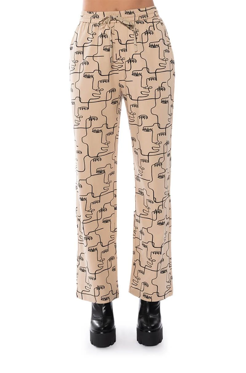 New Year, new The AKIRA Label New Society Drawstring Pants! These bottoms are part of a chic, two-piece set made of a lightweight base fabric with an all over abstract line art print design. Complete with an elastic drawstring waistband, slant side pockets, flap pockets at the back, and a straight leg silhouette. Pair with the matching top, The AKIRA Label New Society Printed Button Down Top, and heeled boots for an easy, effortless look.