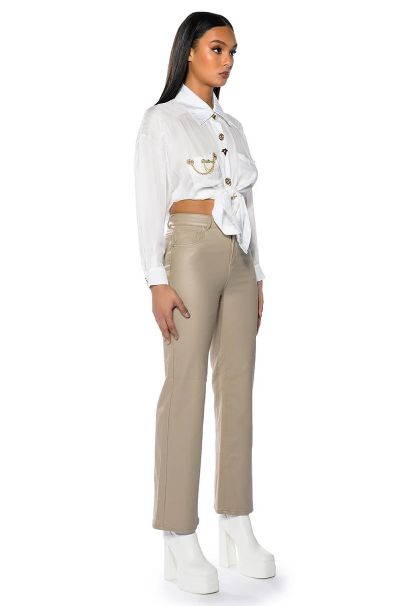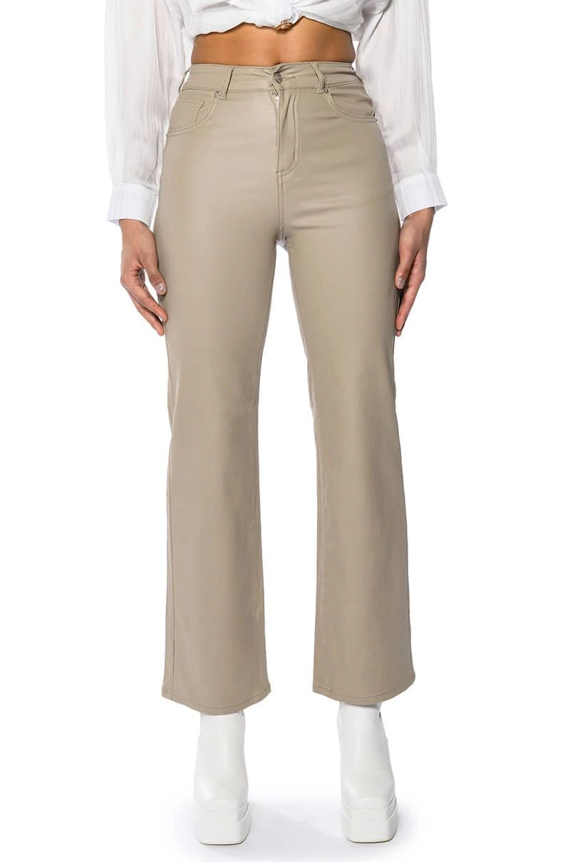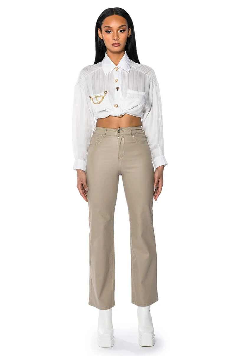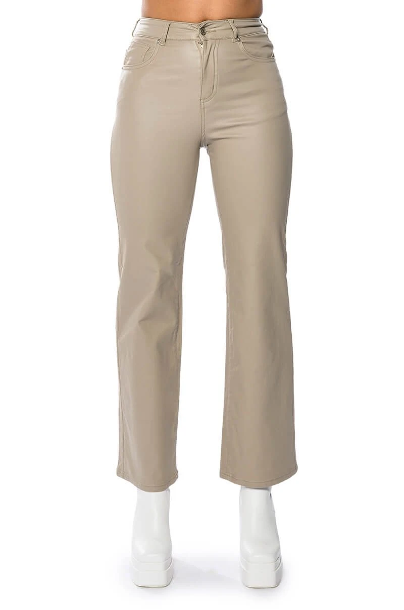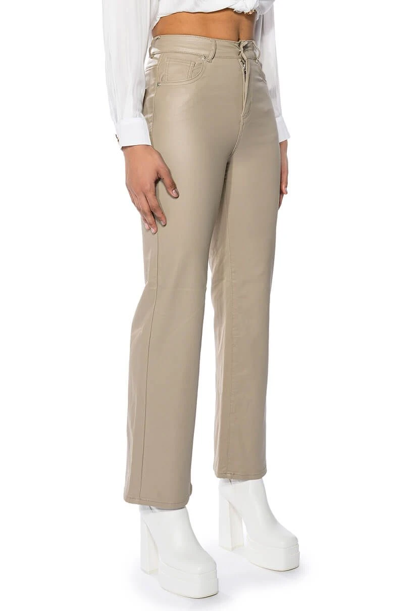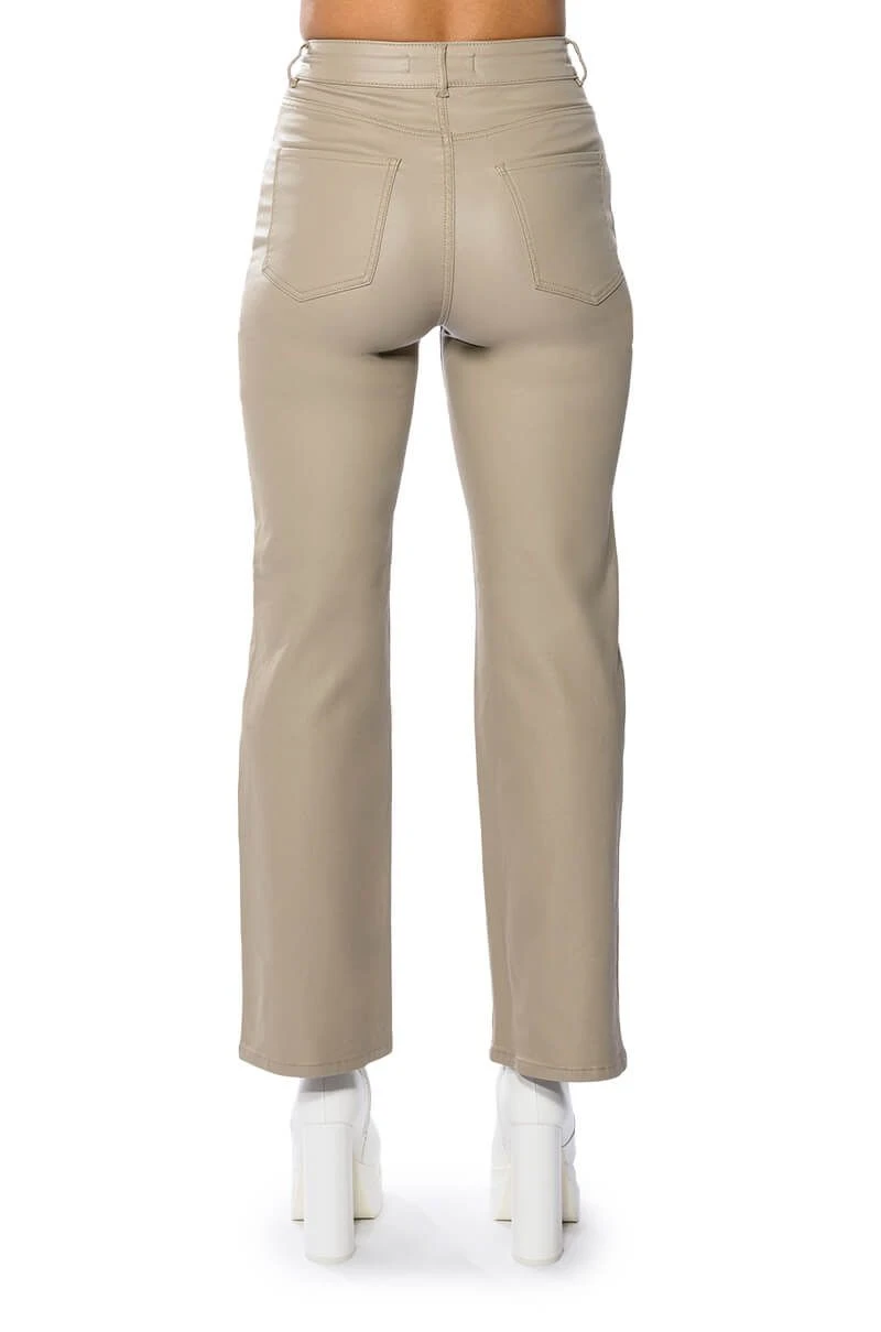 It’s giving model off duty. The AKIRA Label Off Duty Faux Leather Coated Straight Leg Pant is made with a soft base and faux leather fabrication. These form flattering pants feature a mid-rise waist, classic 5 pocket design, straight-leg silhouette, and a zip-up button front closure. Pair with a cropped tank, moto jacket, and loafers for an everyday IT-girl look!