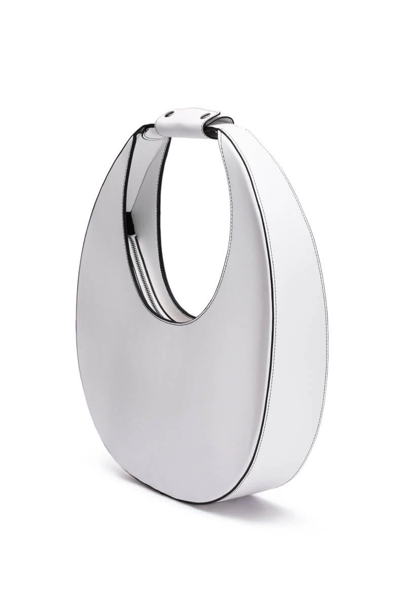 The AKIRA Label Over The Moon Oversized Circle Bag is made from a vegan leather fabrication and features an oversized circle silhouette, a rounded top handle with a snap button panel, contrast piping and stitching, and a top zipper closure.