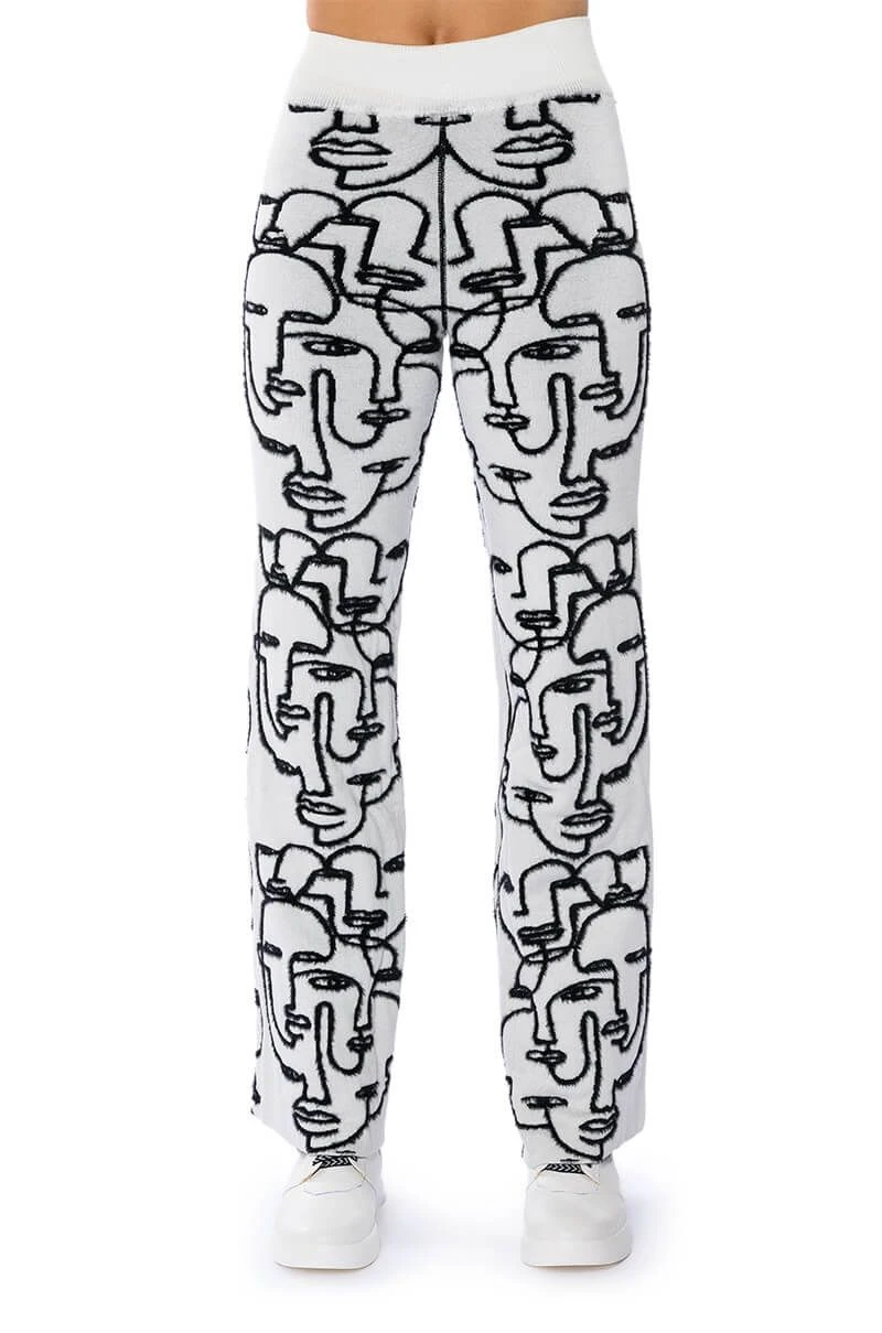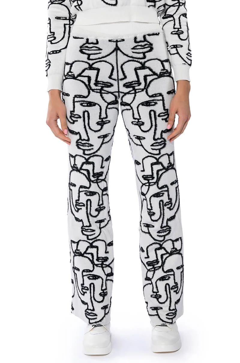 The AKIRA Label She’s Giving Art Reversible Wide Leg Knit Pant is a part of a stylish two-piece athleisure set. Perfect for your New Year’s wardrobe, these high waisted pants are made with a soft, stretch knit base fabrication and an all over fuzzy line art design. Complete with an elastic waistband, raw cut bottom hems, a wide leg silhouette, and a pull-on fit. Turn these pants inside out for the inverse design! Pair with the coordinating AKIRA Label She’s Giving Art Long Sleeve Hooded Sweater and chunky heeled boots for a sleek athleisure look and a night at the museum.