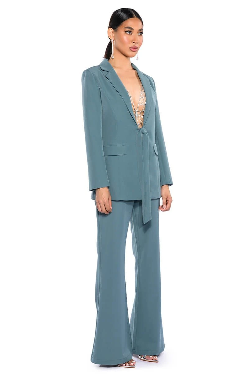 The AKIRA Label Star Rise Flare Pant is made from a sleek, lightweight base fabrication and features a high waist, a form-fitting design, and bell-bottom flared hems. Complete with a concealed side zipper closure. Style with the matching top, The AKIRA Label Star Rise Stretch Blazer, and platform heels.