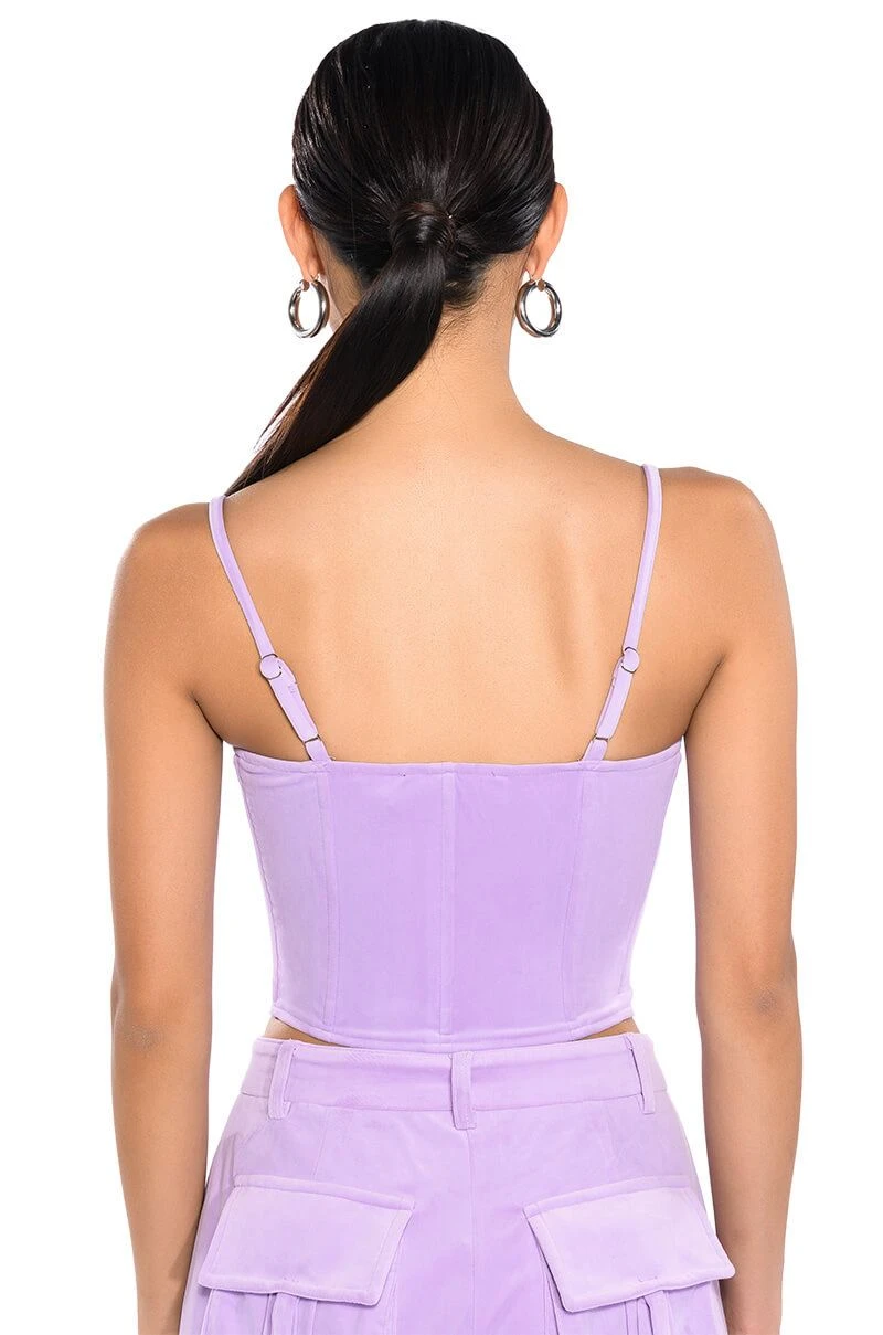 Set the trends in The AKIRA Label Stylist Velvet Corset Top! This chic piece is made from a soft velvet fabrication and features adjustable spaghetti straps, a sweetheart neckline with underbust wiring, boning for structure, a cropped silhouette, a pointed hem, and hook and eye front closures. Pair this piece with the matching AKIRA Label Stylist Wide Leg Velvet Cargo Pants to complete your stylish look.