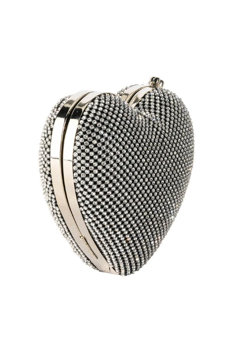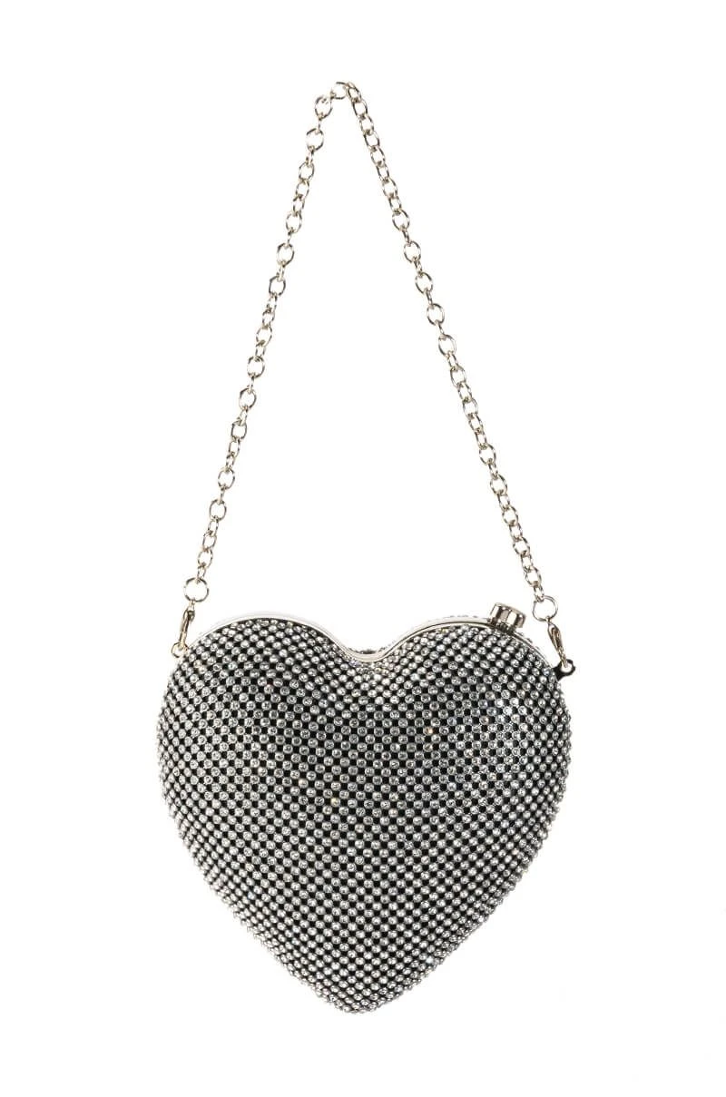The AKIRA Label Take A Chance On Me Rhinestone Purse is an ultra glam rhinestone embellished handbag shaped like a heart. Complete with a push-button lock closure, an inner pouch, and two individual lengths, removable chain straps with lobster claw closure detail.