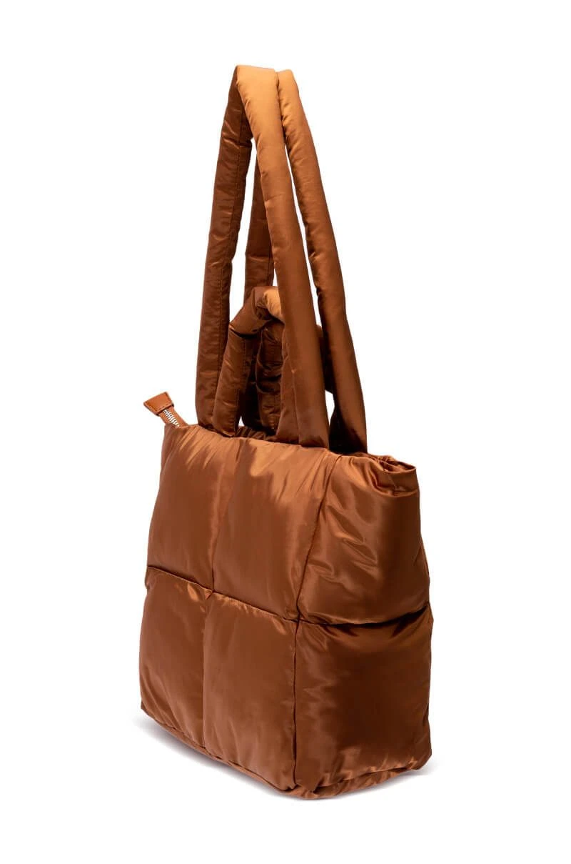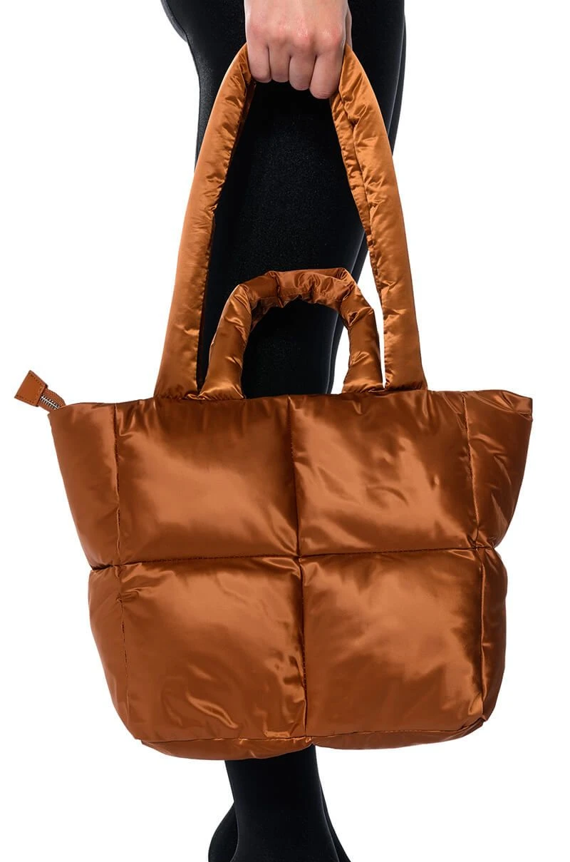 Bring the coziness with you with The AKIRA Label Tova Nylon Tote Bag Purse! This plush handbag is made from a puffer base fabrication and features a soft square body, quilted puffer detailing, and double handle straps. Complete with a zippered inner pocket, inner pouches, and a zip top closure.