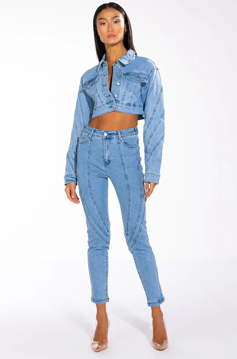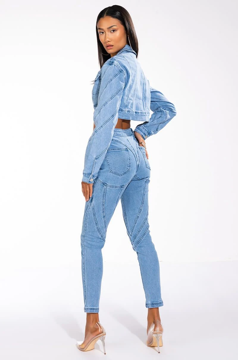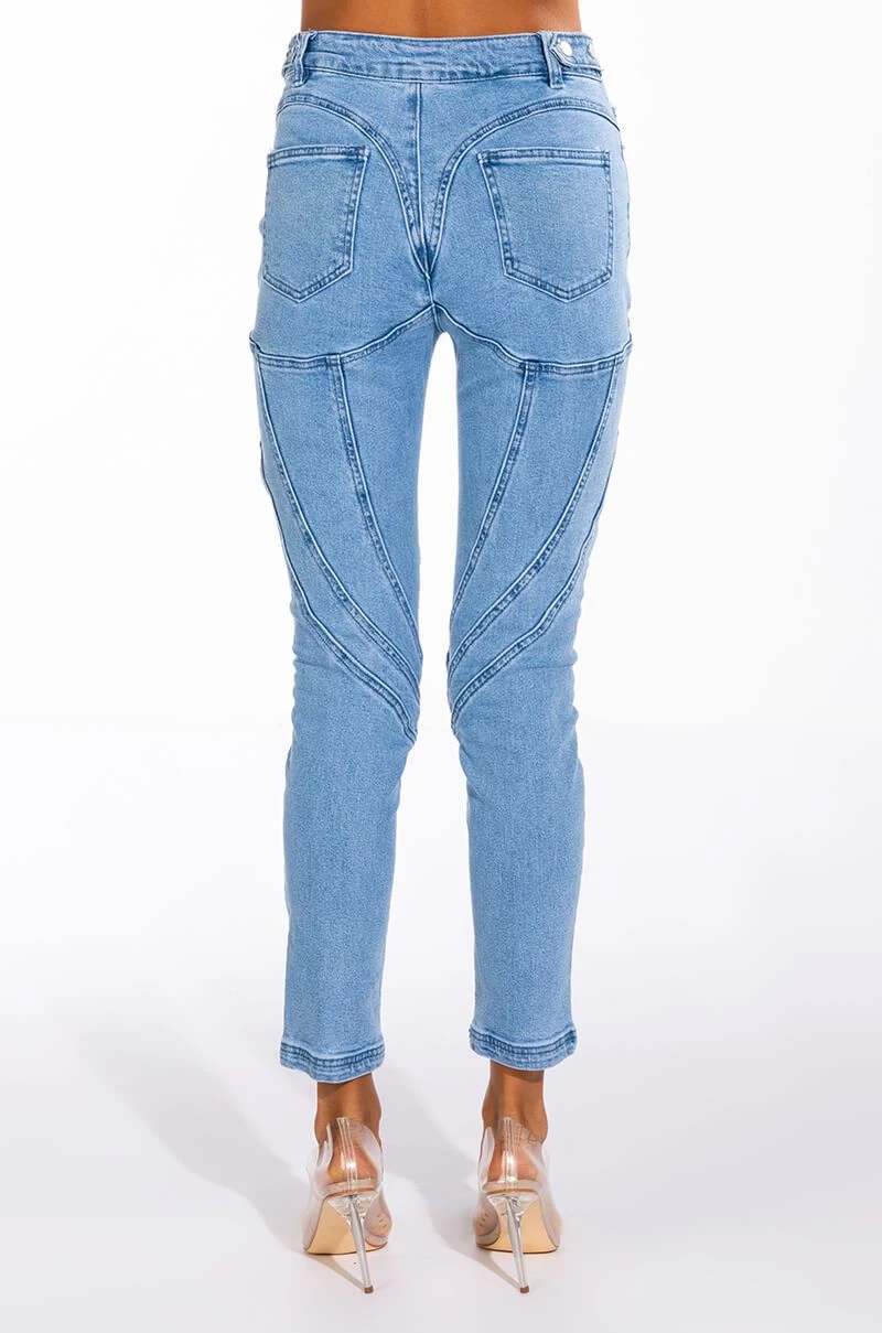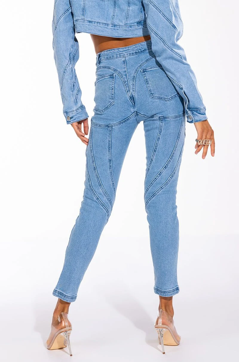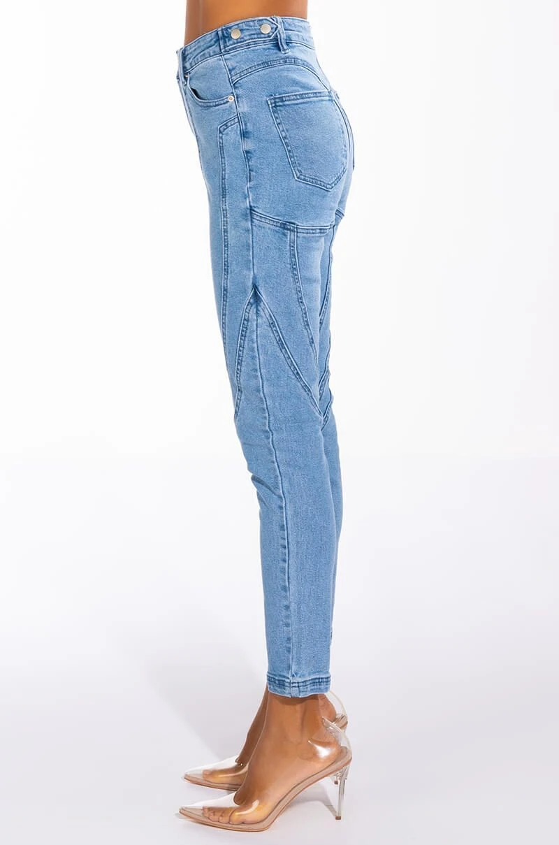 An absolute must buy! The AKIRA Label Worth It High Waisted Skinny Jeans are an elevated everyday pant featuring a structured denim base, a high rise waist, a functional five pocket design, concealed front zip fly, button loop closure, and a slim leg fit. Complete with flattering and unique seam detailing designed to highlight your curves. Pair this piece with the coordinating AKIRA Label Worth It Cropped Denim Jacket to complete your look.