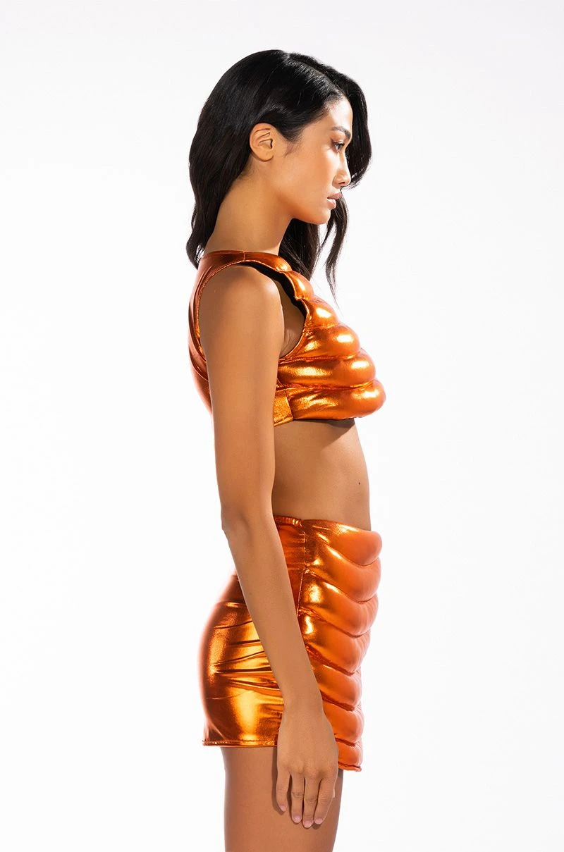 You’re THE girl of the 21st century with The AKIRA Label Zenon Sleeveless Textured Crop Top! This futuristic piece is made from a textured, metallic fabrication and features a sleeveless design, a quilted puffer front, a cropped silhouette, and a curved hem. Pair it with the matching AKIRA Label Zenon Textured Mini Skirt and platform sandals to complete your out of this world look.